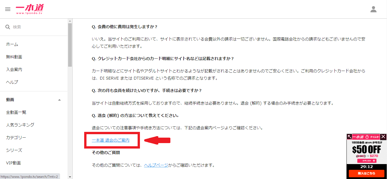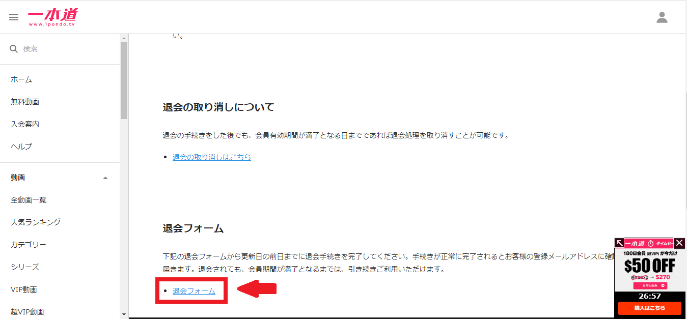 一本道は自動継続方式をとっておりますので、退会手続きをとらない限り自動で更新されます。