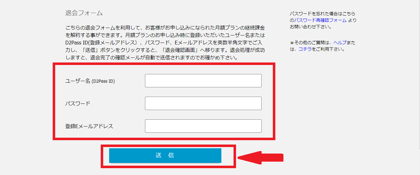 「退会フォームへ」をクリックします。